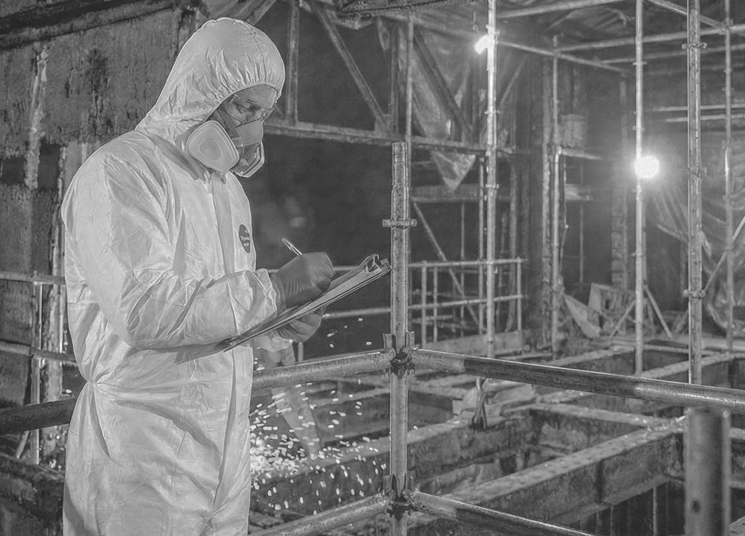 Evitamos paralizaciones y juicios laborales mediante el cumplimiento estricto de protocolos. Nuestro personal está homologado y utilizamos tecnología de contención avanzada, incluyendo unidades de descontaminación de 3 cámaras con presión negativa real, superando los mínimos legales de seguridad.